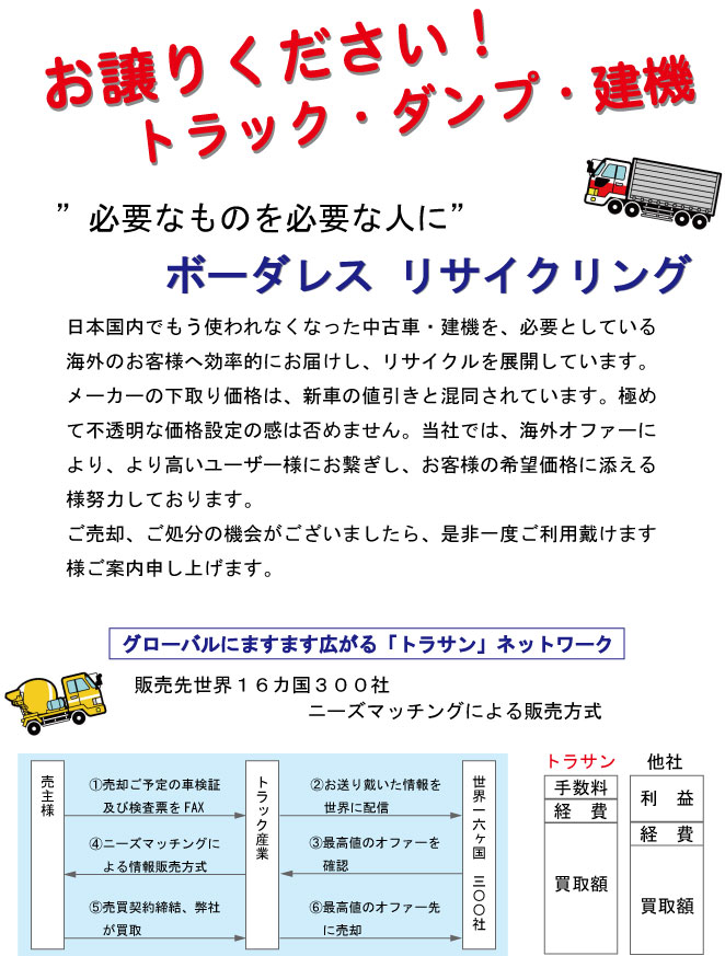 中古トラックの買取・販売は「トラサン」にお任せください。